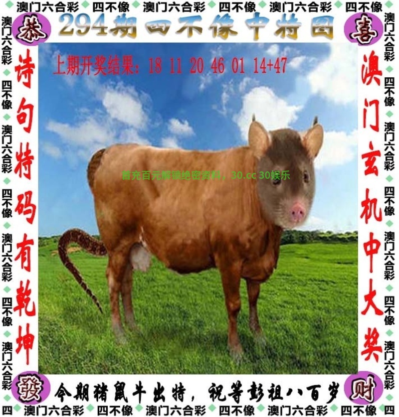 294期:今期猪鼠牛出特,祝等彭祖八百岁开:鼠18准 ①图解特肖猪鼠牛蛇羊 |